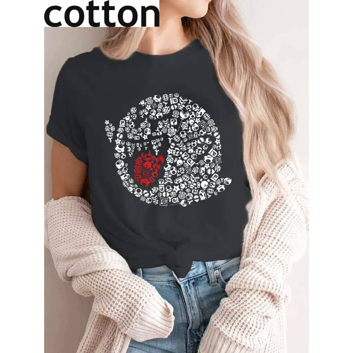 Camisa Fantasma Super Mario: Esta camisa apresenta uma estampa vibrante e divertida, que captura a essência do universo de Mario. O Fantasma Boo, um dos personagens mais icônicos da franquia, é o foco principal da estampa. Ele é representado em um estilo artístico único, formado por uma variedade de elementos do jogo Mario, como cogumelos, moedas, estrelas, canos e outros itens familiares. Esses elementos se unem para criar a silhueta reconhecível do Boo, em uma cena dinâmica e cheia de energia. As cores vibrantes e os detalhes intricados da estampa tornam esta camisa uma escolha perfeita para os fãs de Mario que desejam exibir sua paixão pelo jogo de uma maneira criativa e estilosa.