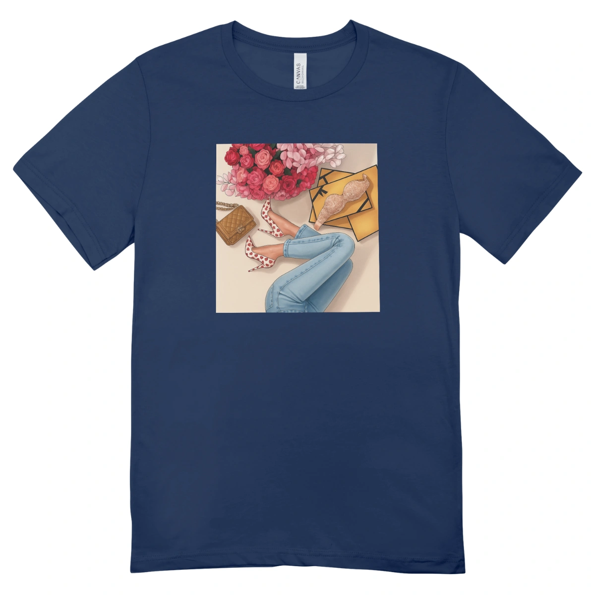 Camisa Feminina Baby Look Flores, Salto e Glamour