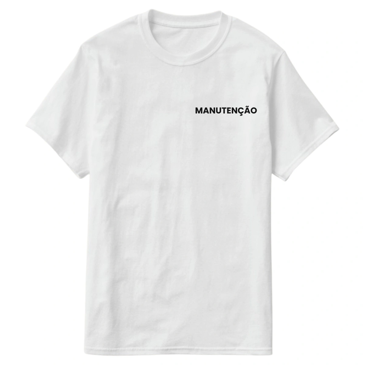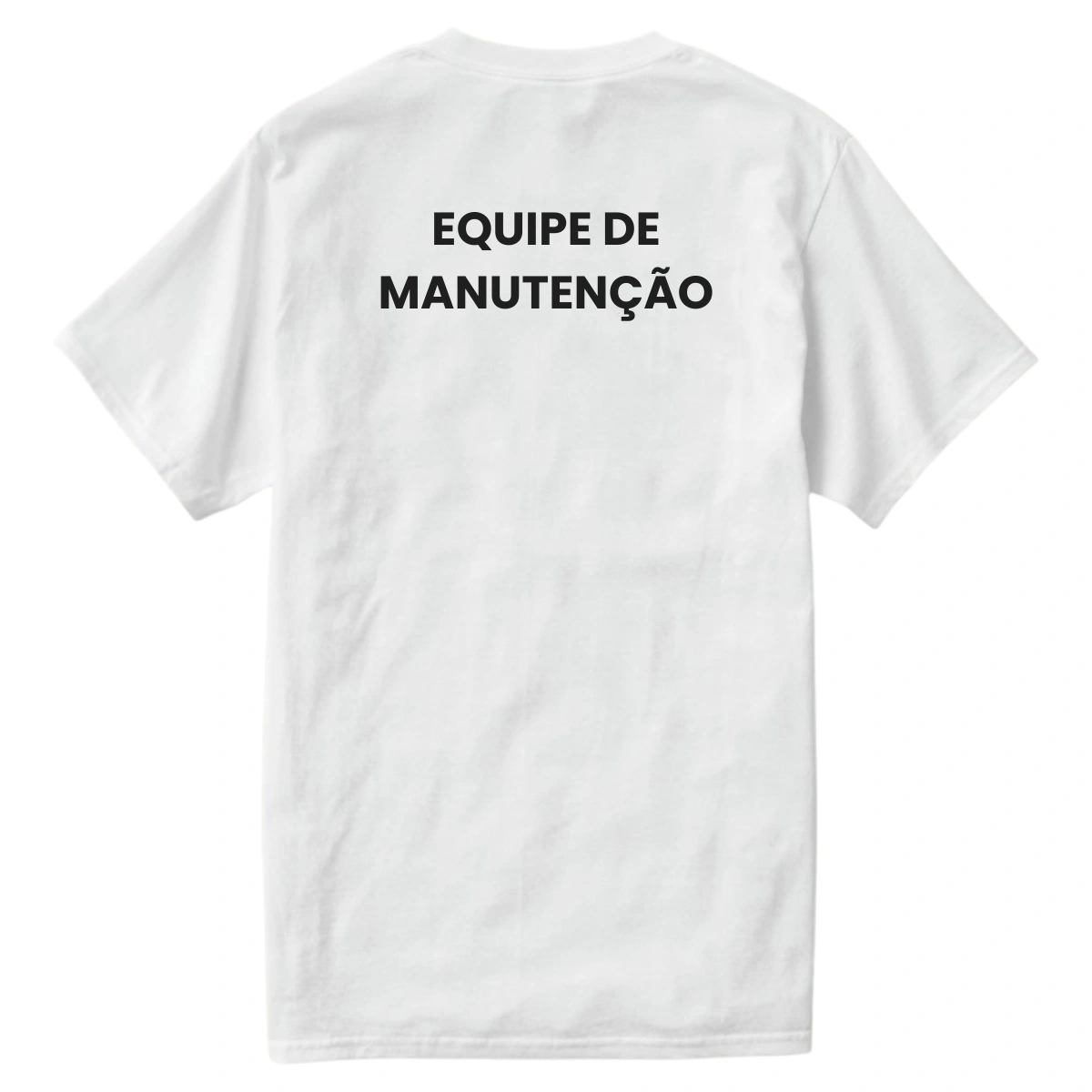 Camiseta Estampada MANUNTENÇÃO e EQUIPE DE MANUTENÇÃO, confeccionada em 100% algodão para oferecer conforto e resistência. Perfeita como uniforme profissional, garante praticidade e identificação, com um design funcional e durável para o dia a dia da equipe.