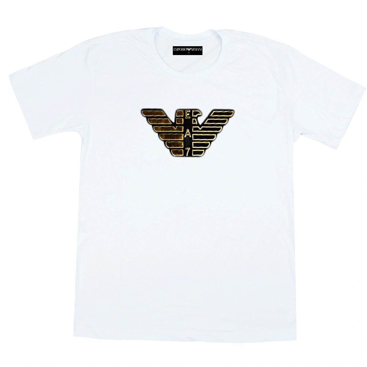 A camiseta apresenta fixado na parte frontal, esse patch em alto relevo que leva a logo Emporio Armani.