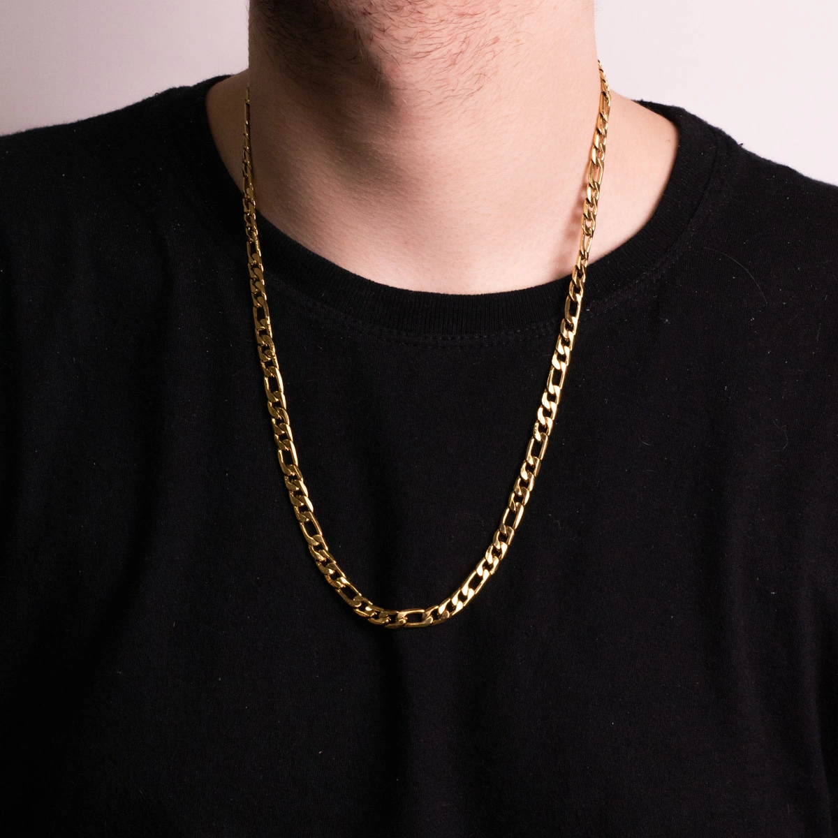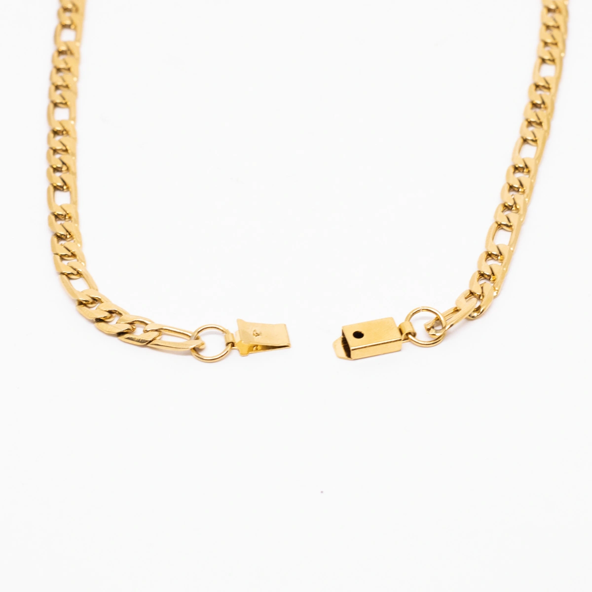 É uma peça que impressiona com sua presença marcante e luxuosa. Fabricada em aço inoxidável de alta qualidade e banhada em um tom dourado deslumbrante, essa corrente apresenta elos em formato oval com uma espessura maior, criando um design imponente e sofisticado.