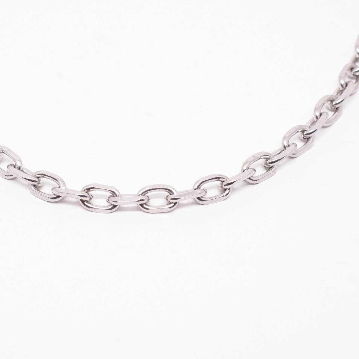 A corrente de aço prata com elo redondo é uma peça elegante e versátil, perfeita para complementar qualquer estilo ou ocasião. Fabricada com aço inoxidável de alta qualidade e acabamento em tonalidade prateada, esta corrente possui um brilho atraente e duradouro.