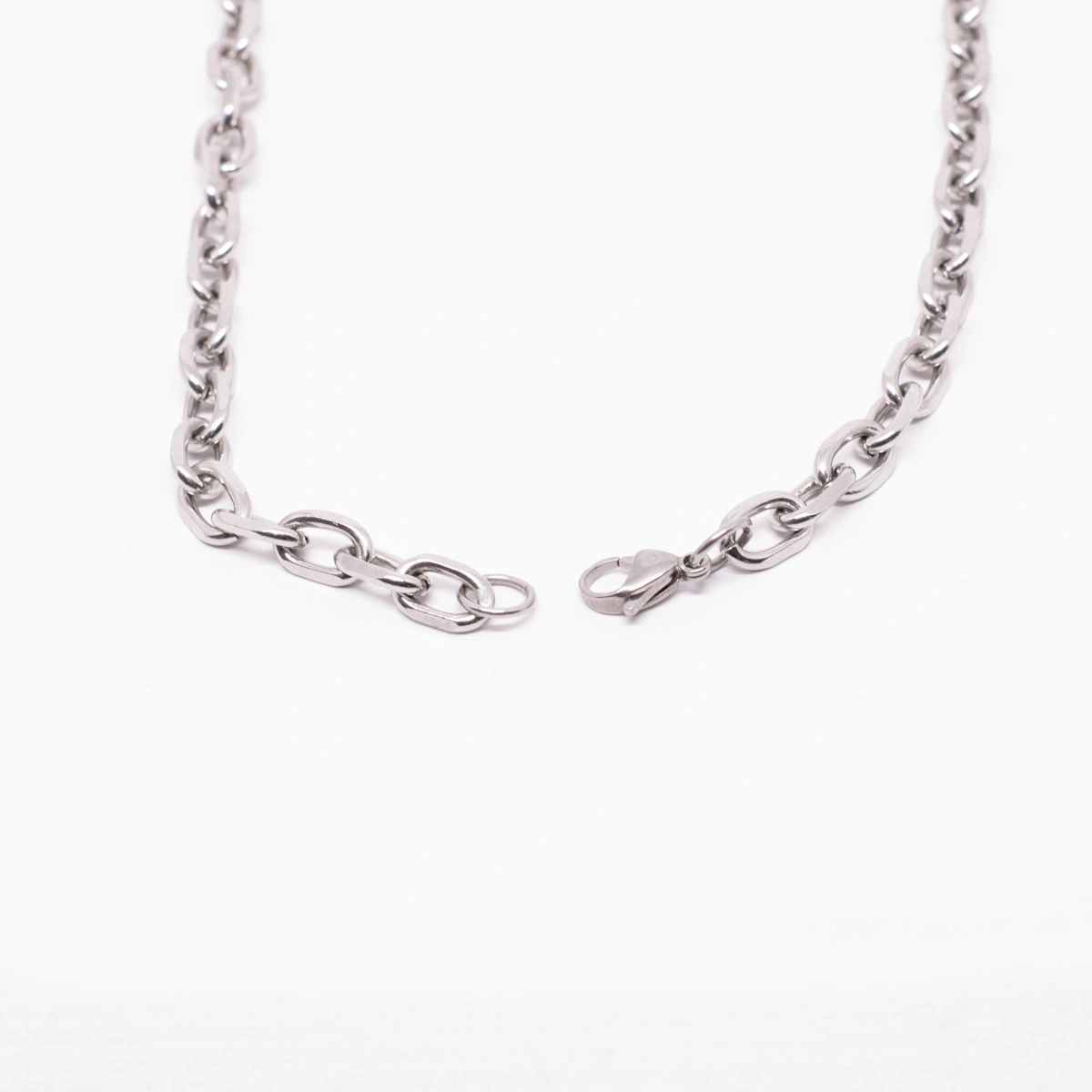 O fecho seguro e prático facilita o uso e a remoção da corrente, mantendo-a firmemente no lugar durante o uso diário. Além disso, o aço inoxidável promove uma excelente resistência à corrosão e ao desgaste, o que a torna uma opção ideal para uso prolongado sem perder o seu brilho original.