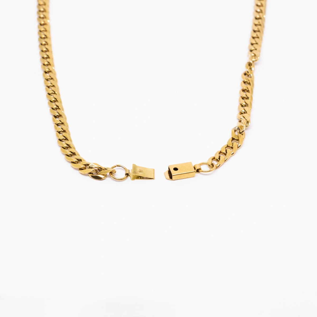Confeccionada em aço inoxidável com banho dourado, essa corrente possui uma aparência luxuosa e duradoura, garantindo que mantenha o seu brilho por muito tempo.