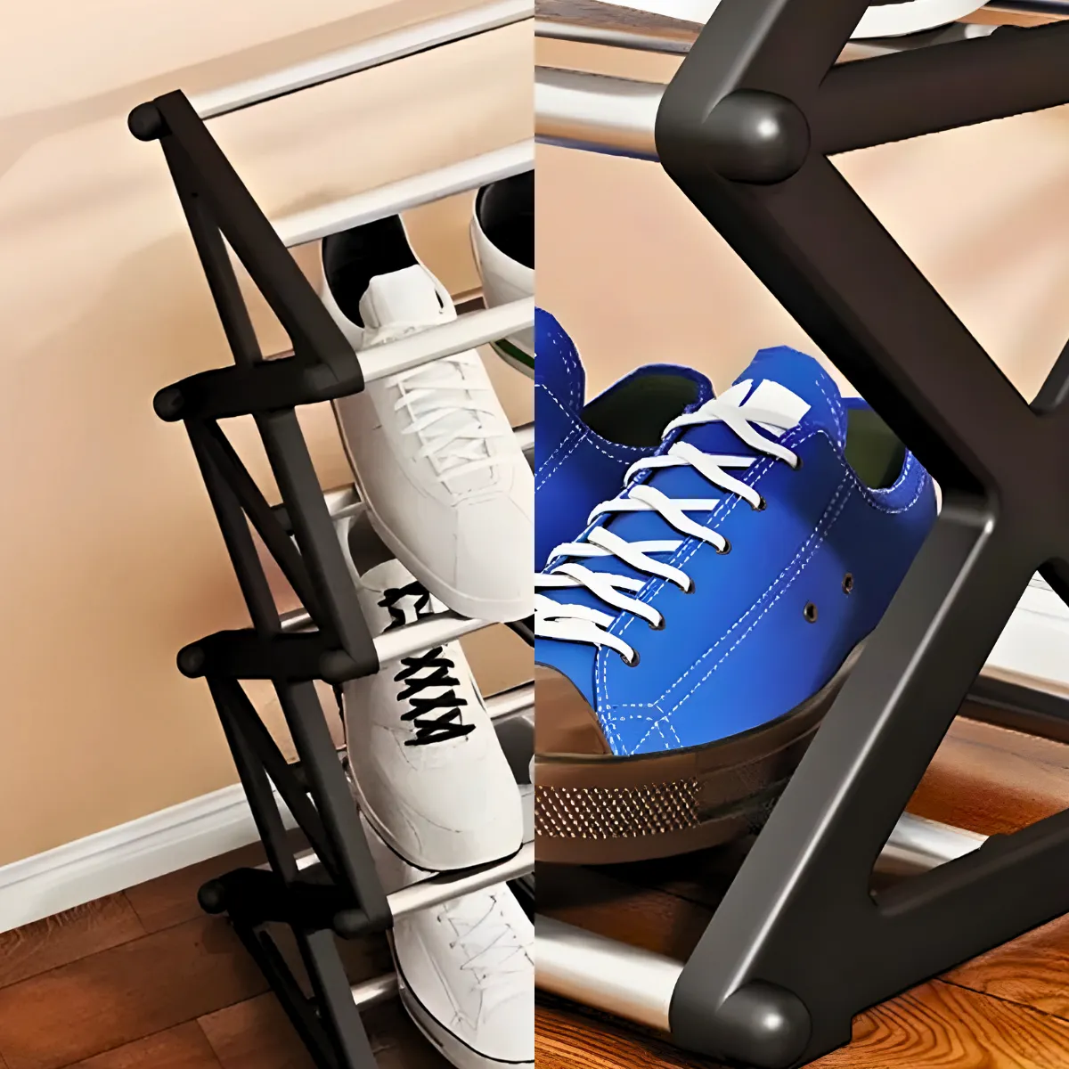 • Design Inteligente: A estrutura sanfonada permite fácil acesso a todos os níveis, facilitando o armazenamento e a retirada dos sapatos. Quando não está em uso, o design permite uma economia de espaço significativa.