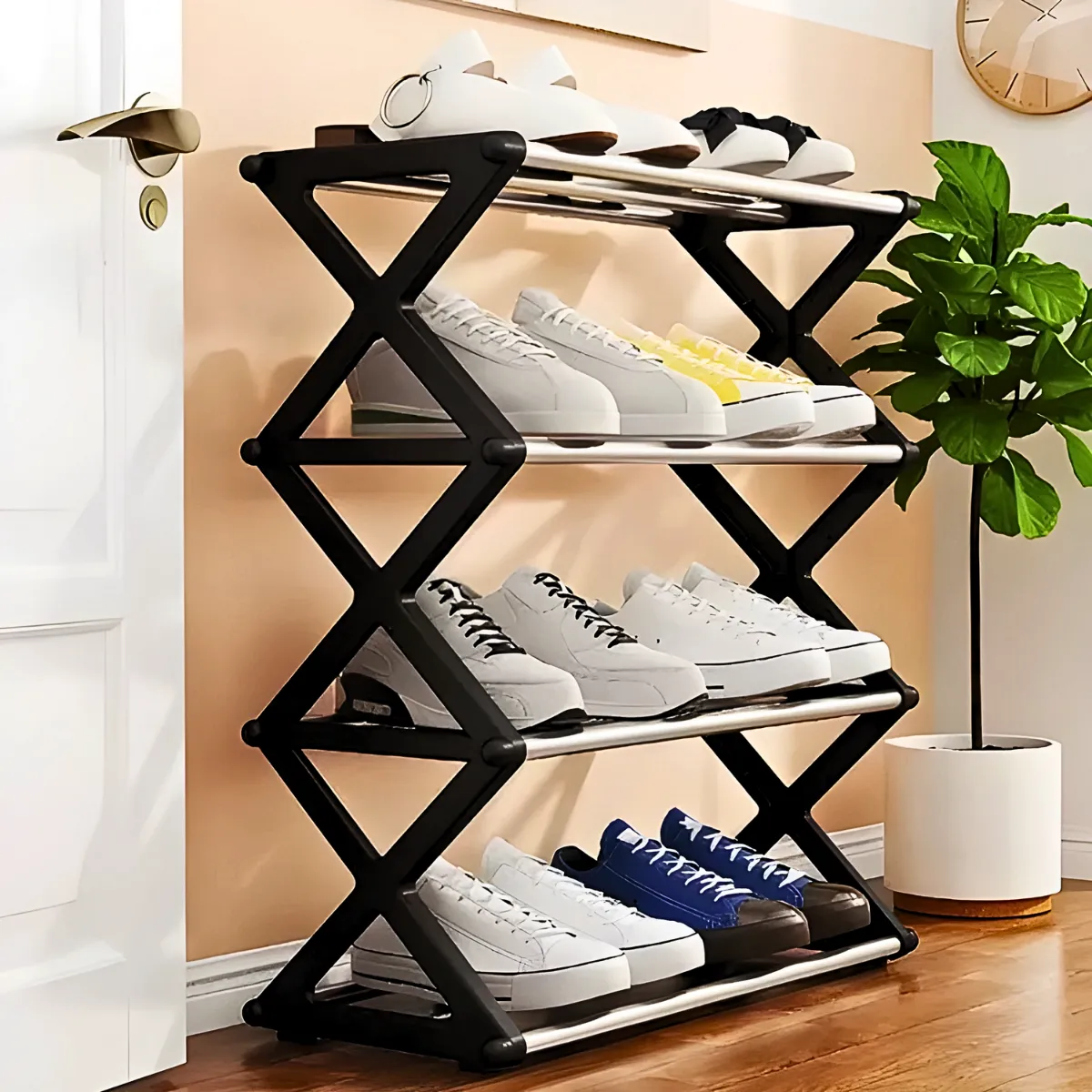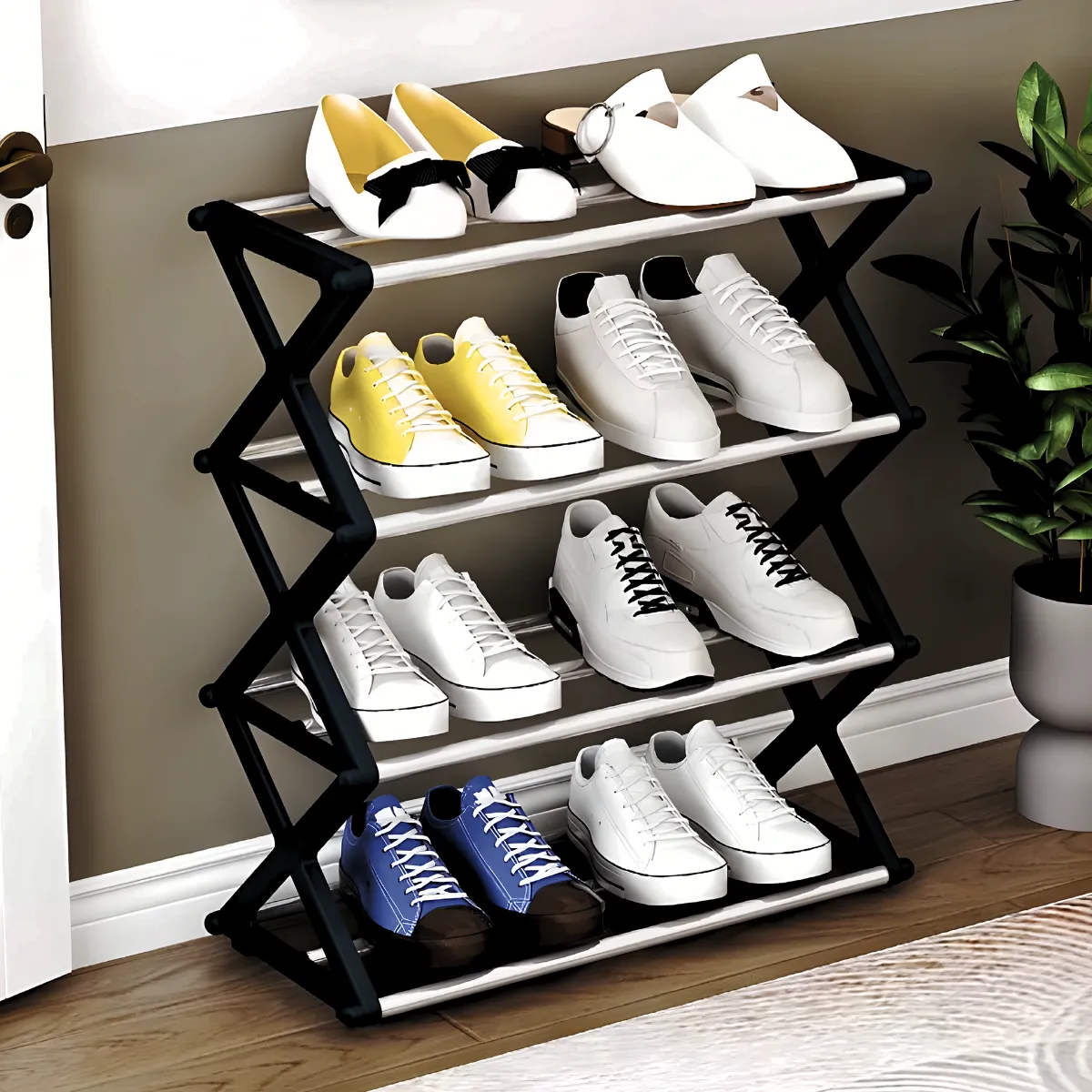 • Transforme a forma como você organiza seus calçados com a sapateira prateleira sanfonada de 4 andares. Este organizador combina eficiência, durabilidade e estilo, tornando-o uma escolha ideal para qualquer lar.