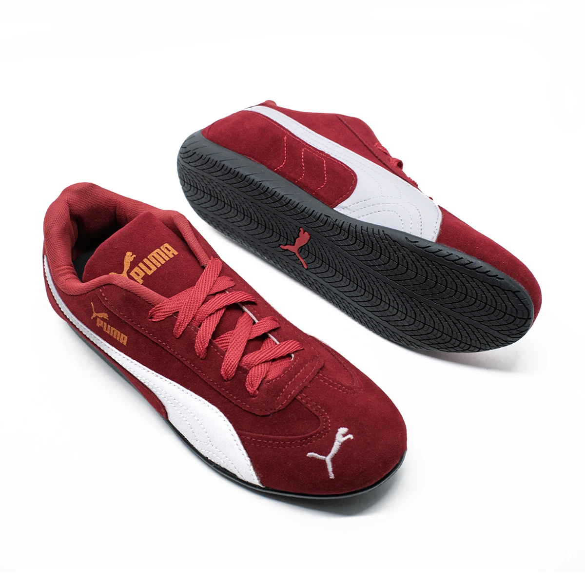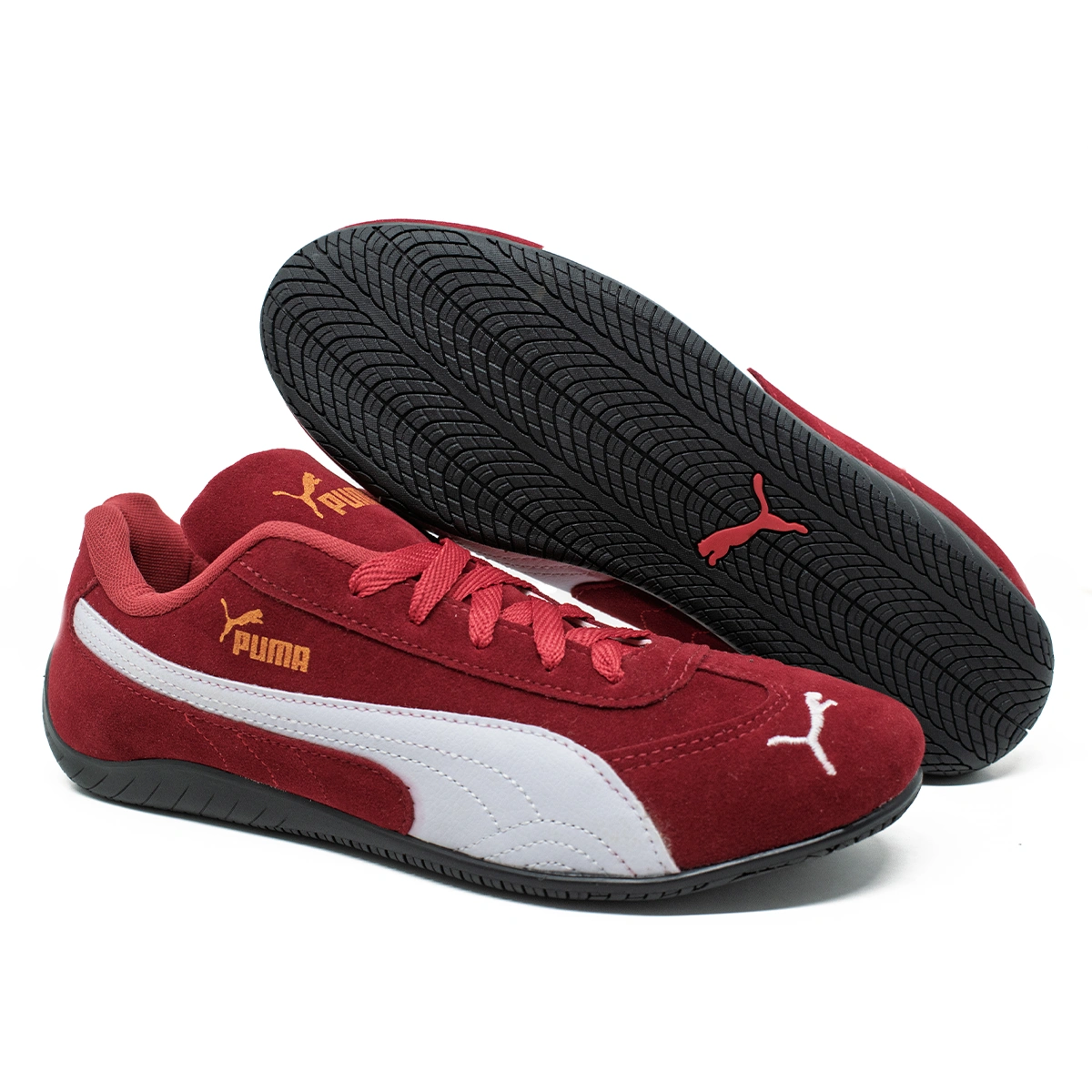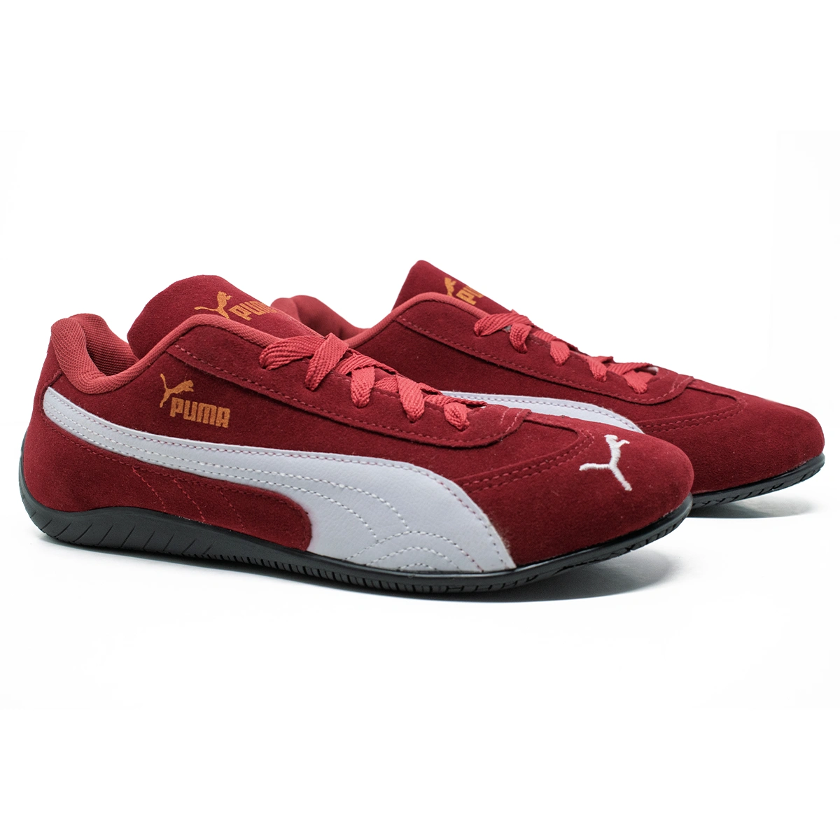 Inspirado no universo automobilístico, o Tênis masculino Puma Speedcat é a escolha perfeita para quem busca estilo esportivo e conforto no dia a dia. Com design aerodinâmico, este modelo em vermelho vibrante apresenta a icônica faixa lateral da Puma em branco, além do logo dourado que adiciona um toque premium. A construção em camurça garante durabilidade e elegância, enquanto o solado emborrachado proporciona excelente tração. Ideal para uso casual ou para os apaixonados por velocidade e performance com estilo.